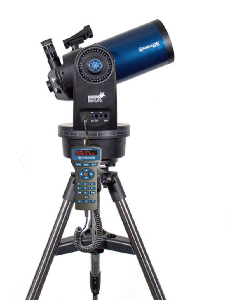 Their compact size and easy to use handset make them a favorite for first scopes. The ETX 125 comes with a very strong/stable mount, red dot finder and eyepieces. The handset includes a database of 30,000 objects and hours of audio files that will tell you about the Moon, planets and deep sky objects.